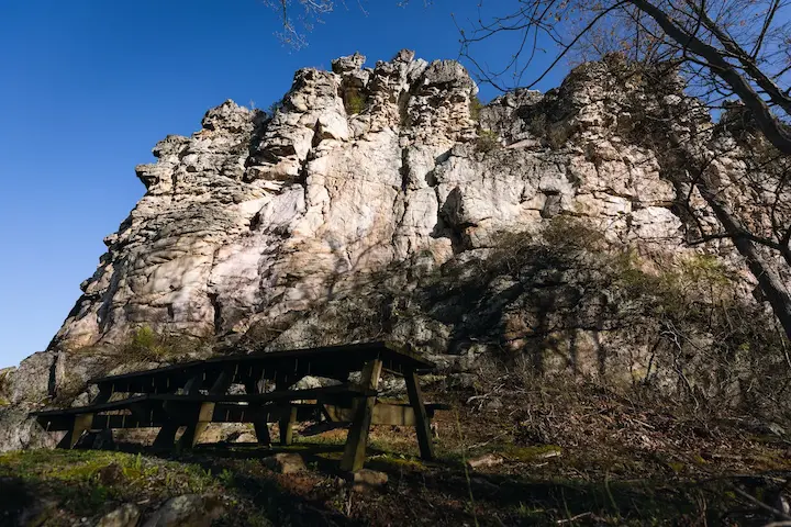 One of the featured picnic areas in Pinnacle Rock State Park captured in the early springtime.