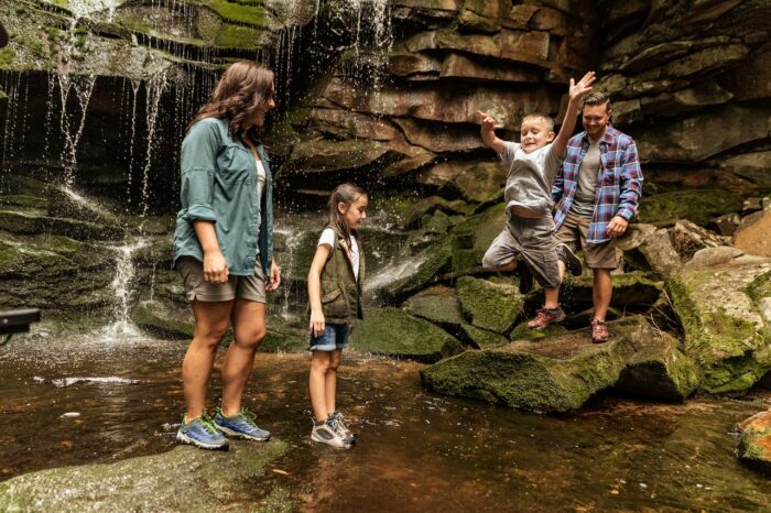 Let your kids explore the great outdoors with a hike to one of the state’s most hidden gems. This 2-mile climb pays off with spanning views at nearly 3,000 feet above sea level. Look out upon three West Virginia counties and two Virginia counties below. Enjoy a snack, sit down and take a break in the stone hut or snag a photo on the Almost Heaven swing!